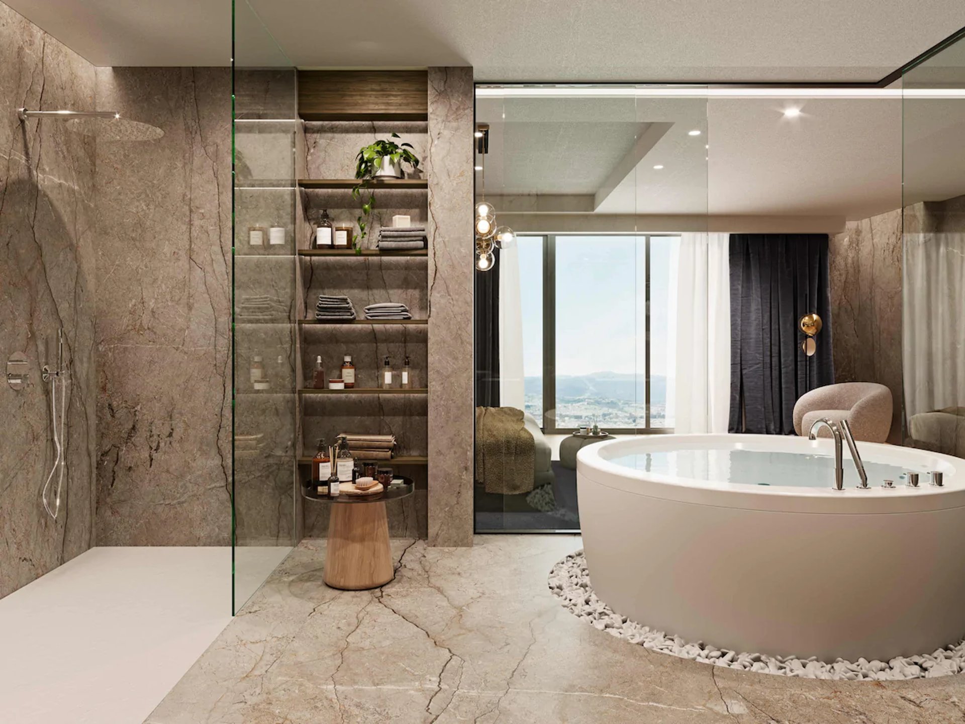 A friendly professional handyman talking with a homeowner in a renovated kitchen